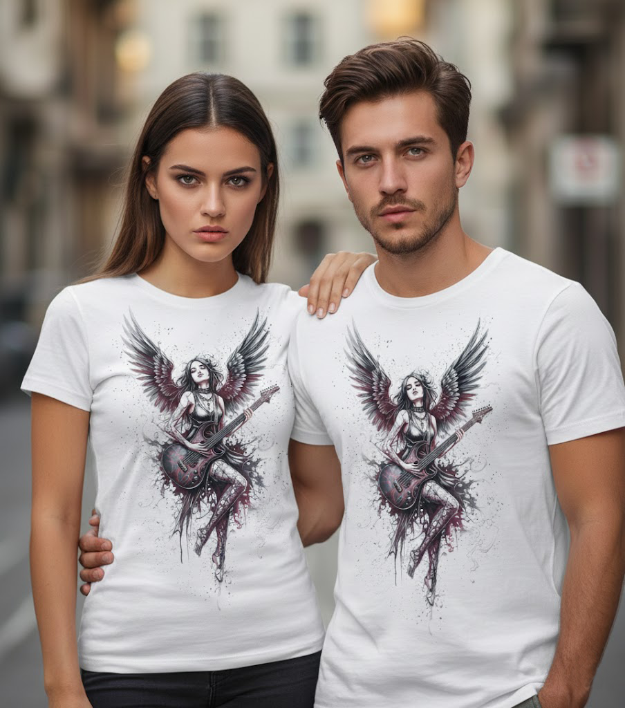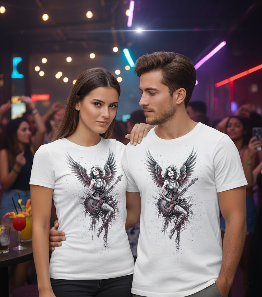 Electric Darkness nace del contraste: una camiseta blanca que no intenta encajar, una chica gótica que convierte cada nota en una declaración. No toca para gustar. Toca porque lo necesita. Porque el rock no es una pose, es una forma de liberar lo que llevas dentro.